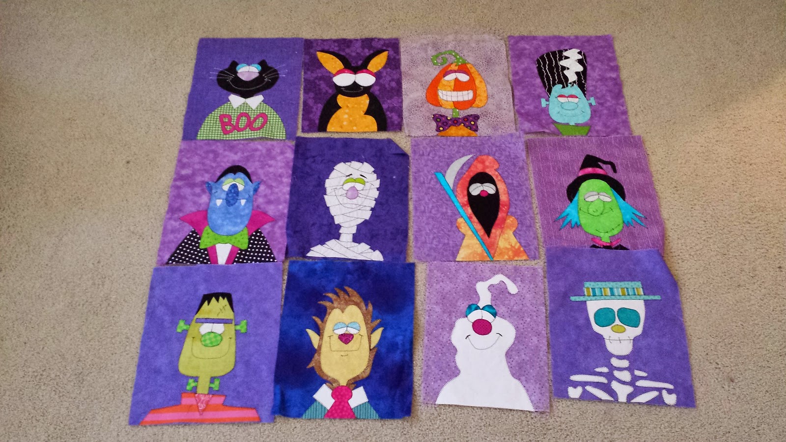 All of these blocks need some machine applique. Except the candy cane, Toni sewed that one together for me. I need to add a couple of holly leaves. We have just about everything else cut and ready to put the other blocks together. I can't believe it is going together so quickly!